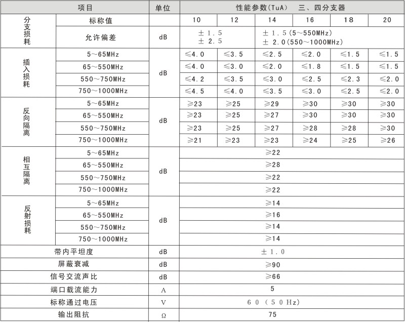 TuA分支器系列、SuA分配器系列