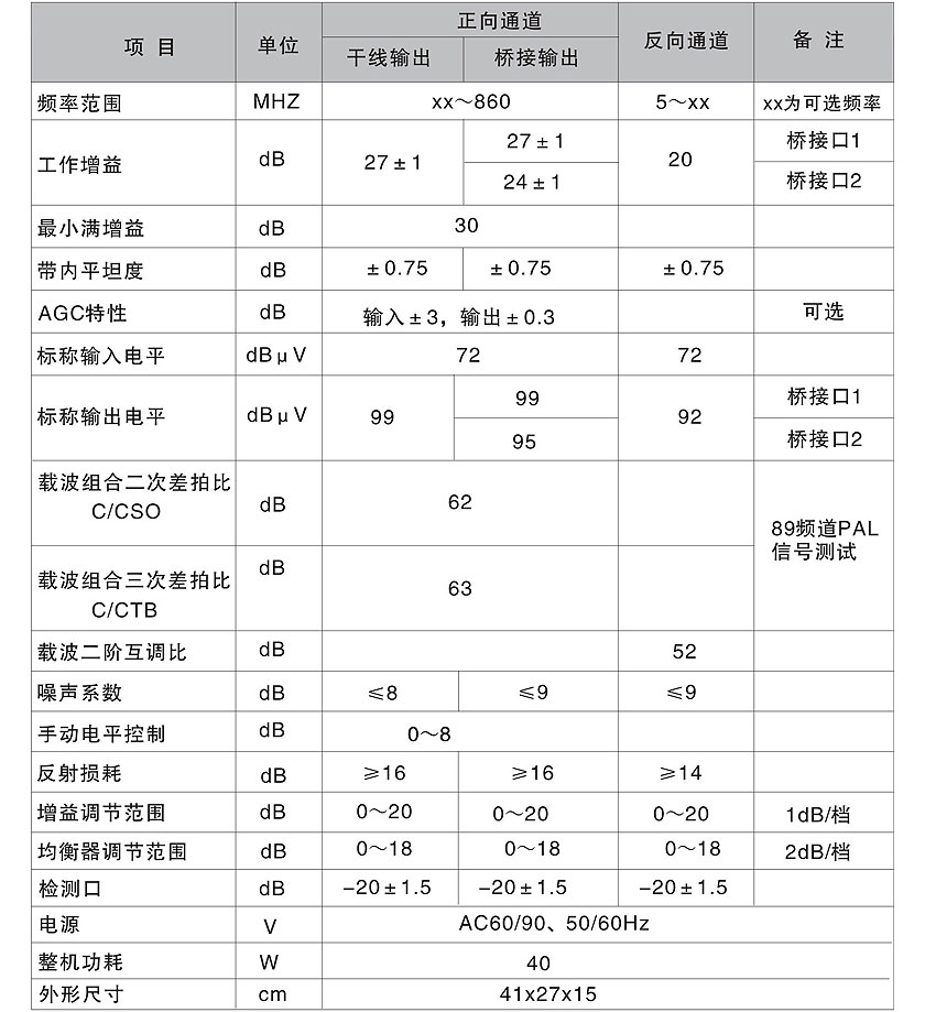 隨著人們對各種信息的需求和網絡技術的發展,CATV網絡不僅要提供電視業務,而且必須滿足多種業務的需求。如視頻點播(VOD)、Cable電話、數據傳輸等。因此光纖、同軸電纜混合網絡(HFC)及雙向傳輸網絡已是CATV網絡發展的必然結果。在HFC網絡和雙向傳輸網絡中,雙向干線橋接放大器是CATV網絡雙向改造的重要設備。