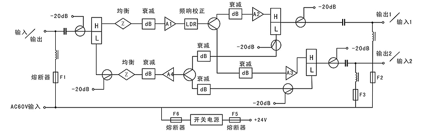 為適應(yīng)用戶不同要求,我公司還設(shè)計系列級間插入式均衡器、衰減器插件,便于用戶調(diào)整放大器的斜率和增益。