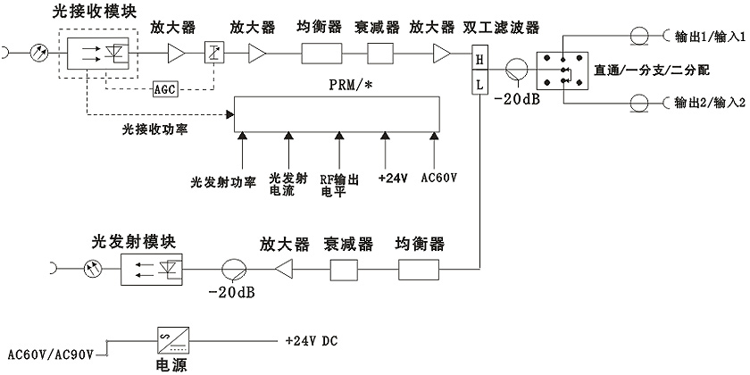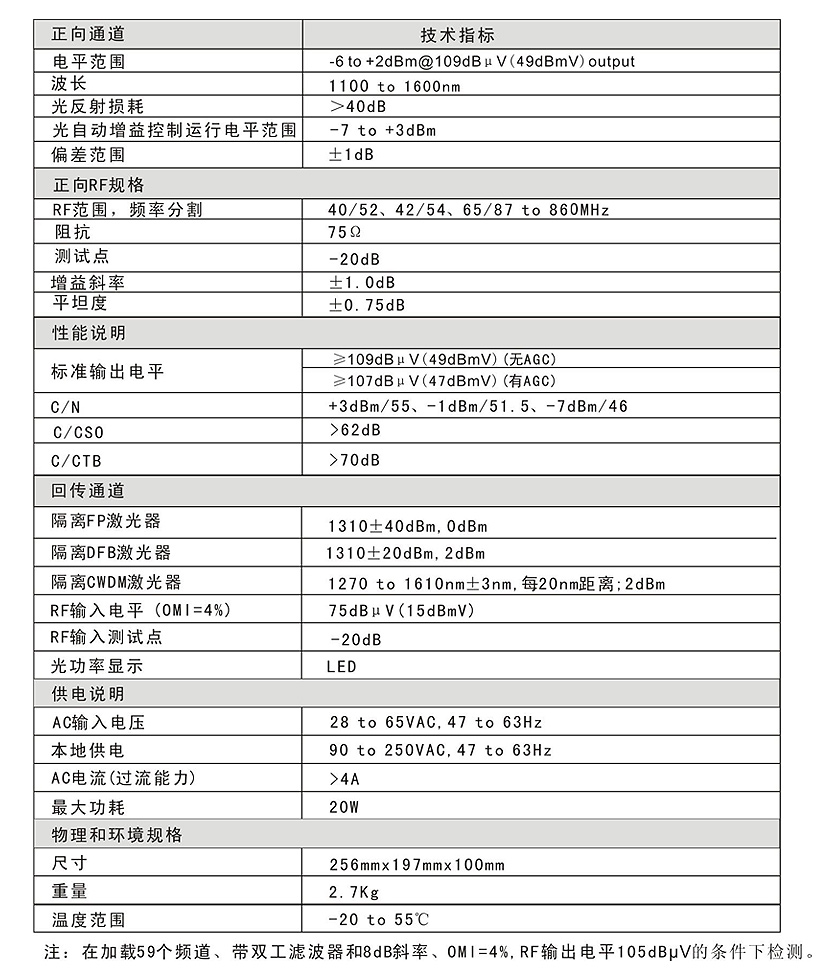 5)低噪聲放大匹配電路和進口輸出級優良的砷化鎵放大模塊,確保輸出信號CTB、CSO符合國家標準。